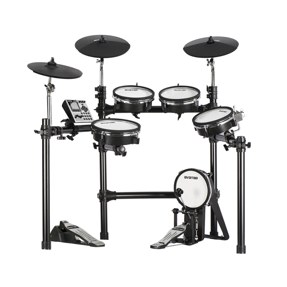 La estabilidad es fundamental cuando se toca con energía. La Avatar SD201-1S está montada sobre un rack de cuatro postes fabricado en aleación de alta resistencia. Este diseño minimiza las vibraciones y evita que los pads se muevan durante la ejecución. Además, su configuración es altamente ajustable, lo que la hace perfecta tanto para niños como para adultos, optimizando el espacio en habitaciones o estudios pequeños.
