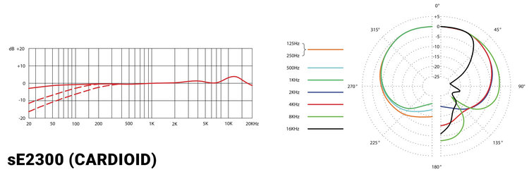 Respuesta Transitoria: Gracias a su diseño preciso, el sE2300 captura los ataques rápidos de instrumentos percusivos o cuerdas con una definición que es difícil de encontrar en su rango de precio.